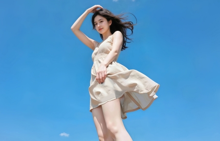 晴天 蓝天白云 阳光美女连衣裙 3440x1440带鱼屏壁纸