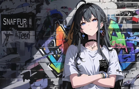 街头+涂鸦墙+动漫少女+4K壁纸+3840x2160