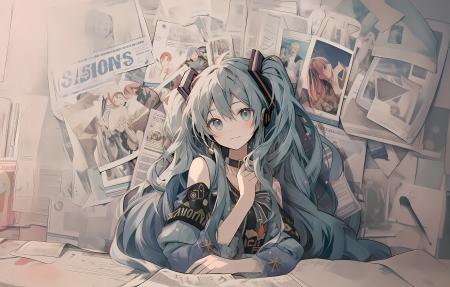 海报+报纸墙+初音未来+4K动漫壁纸+3840x2160